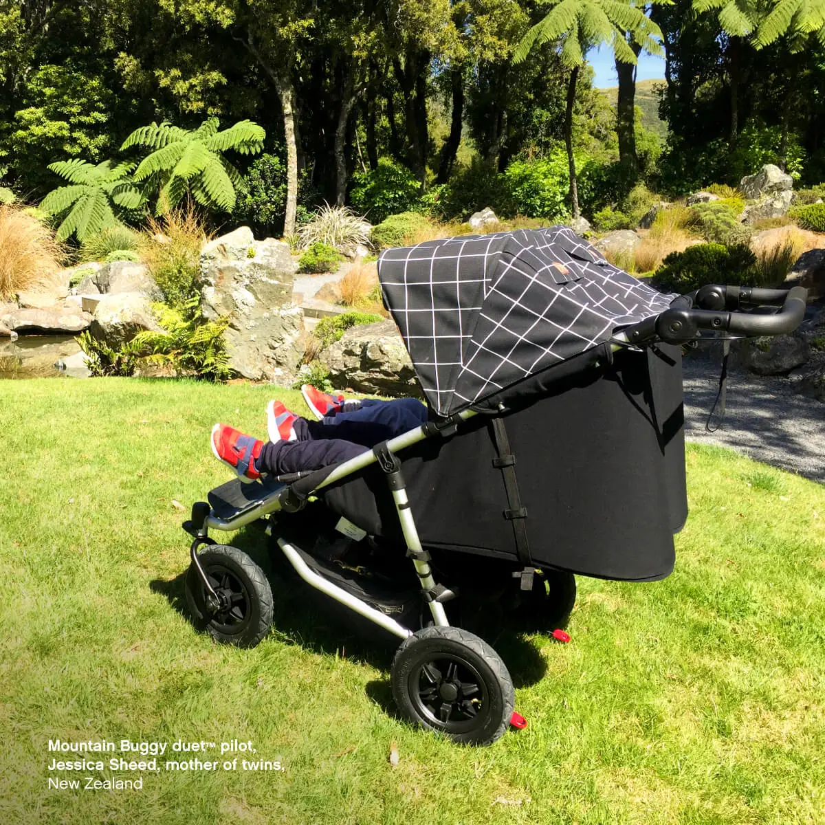 Built upon the same engineering platform of our Red Dot award winning urban jungle™ luxury collection; duet™ has been masterfully crafted with such extreme versatility for either siblings OR twins, combined with features specifically tailored to take two. Staying true to what a mountain bike would offer with its true air filled tyres, duet™ is a reliable 4-wheel buggy that provides incredible suspension to take you from the urban pathways to the mountain trails; tackling all-terrain with sublime ease, comfort and maximum control, always delivering in superior manoeuvrability and kerb pop.