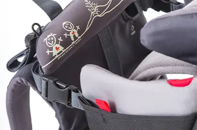 With a padded 5-point shoulder harness, your child can safely travel on your back while the moldable headrest, chin pad & super soft fleece fabric provides extreme comfort to snooze on the move when needed! The seat height is also adjustable to grow with your kid