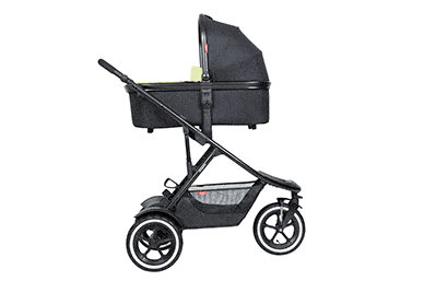 This fun lovin’ 3-wheeler can take you on all terrain adventures, as the manoeuvrability and handling are second to none with the added suspension the air filled tyres offer. The fabric sling seat delivers not only an automatic lie flat bed for a newborn, but it’s also positioned perfectly snug inside the buggy frame, and sitting at the right height for perfect weight distribution to easily kerb pop in and around town..., and as a new parent, one can never underestimate how many times you will be kerb poppin’!