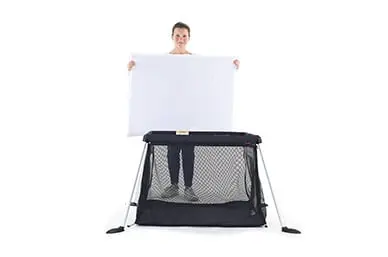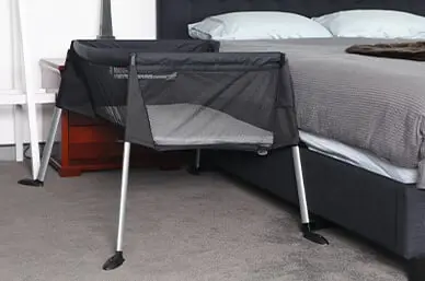 This amazing 4-in-1 portacot can be used as a standalone newborn bassinet, a sleeping bed for toddler, as a cool playpen during the day; & now has the ability for you to have your newborn nestled right next to you safely – snug-to-bed, up close & personal!